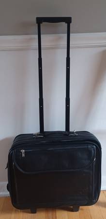 Brookwood Travelers Original Leather Rolling luggage with handle...was $200 new. Top of the line luggage. Lots of various zippered storage spaces. 18" by 15" by 6". Hardly used. Pick up in or near...