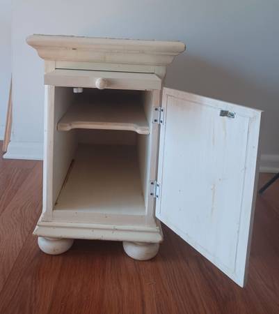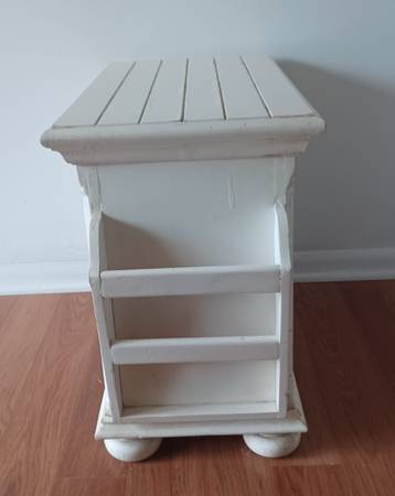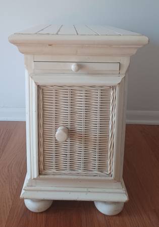 Vintage White Wicker nightstand, wooden, with drawer / magazine Rack