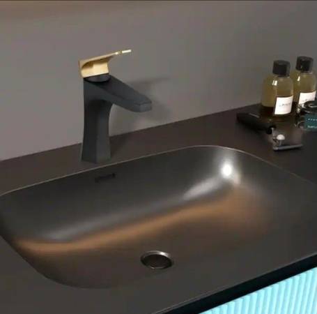 AKDY Single Hole Single-Handle Bathroom Faucet in Matte Black/Brushed Gold, New,