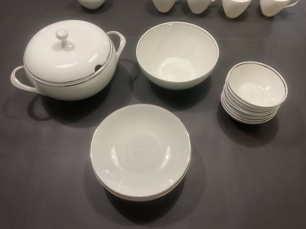 This set of china not only has service for 8 but additional cups and saucers (those always break first) and many additional serving pieces.