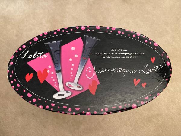 LOLITA HAND PAINTED SET OF 2 CHAMPAGNE GLASSES "CHAMPAGNE LOVERS",