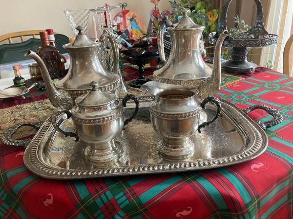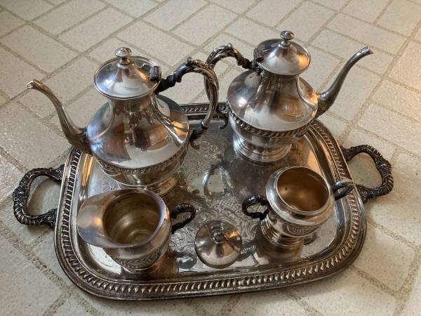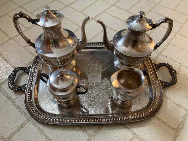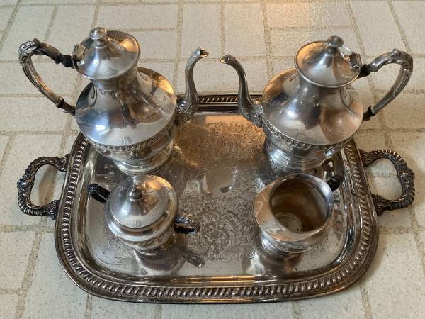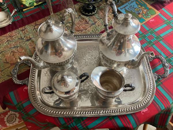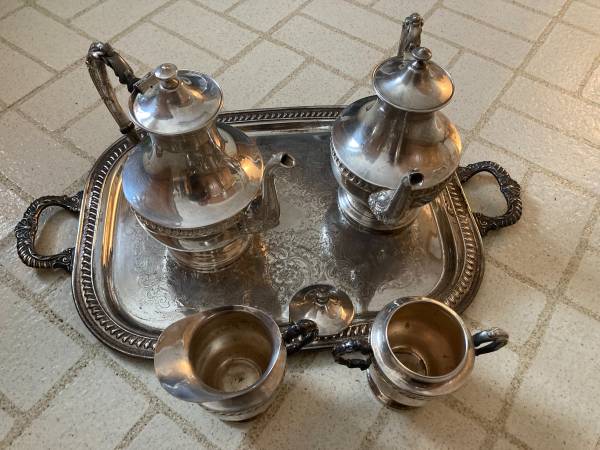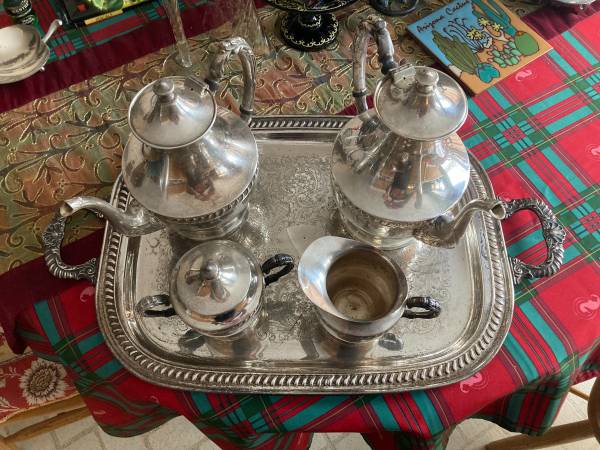 Gorgeous vintage 4 piece Tea/Coffee set with Tray Silver on Copper Please see the pictures for all details