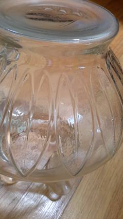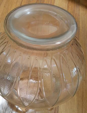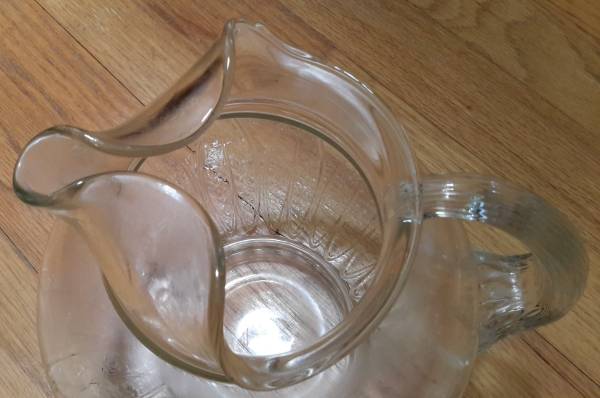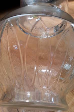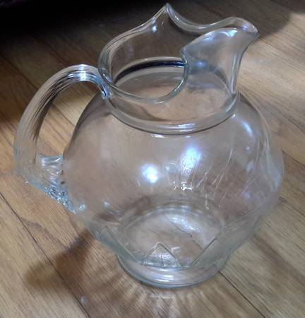 Vintage Clear Glass Lemonade Ball Pitcher Floral Pattern Ribbed Handle Ice Lip Approx 9.5" Tall Approx 10" Wide