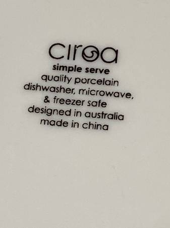 Four appetizer plates in very good condition. Cream background with black script writing. Made of quality porcelain. Measures 6 inches across.
