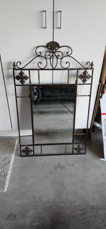 Metal Art w/ Beveled Mirror 26.75 wide x 41.5 high 17 pounds - nice condition