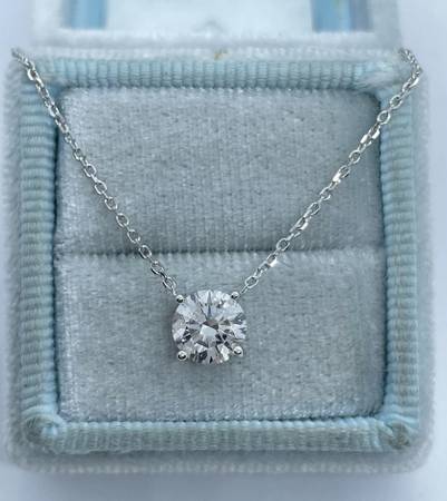 14k white gold necklace with a 1.8 carat or 8mm moissanite diamond center