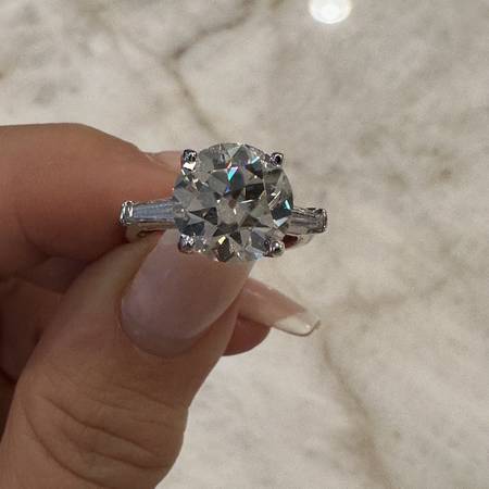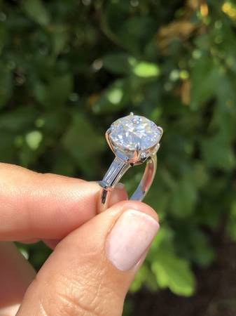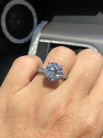 NEW Custom Made Platinum ring with natural diamond baguettes , center is a 10mm moissanite diamond equal to 4 carat diamond weights