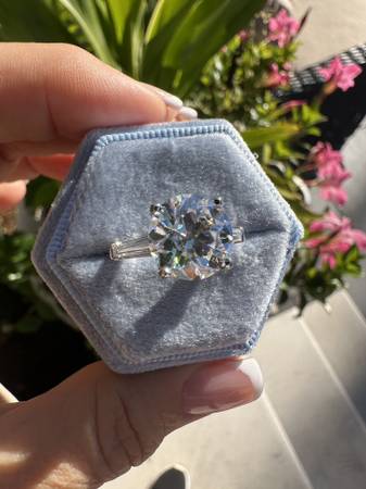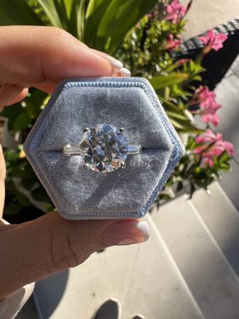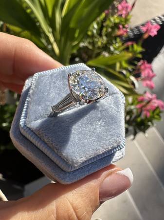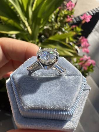 Platinum custom made ring with side baguettes, set with a 4 carat Moissanite diamond equivalent center NEW Retail $6990
