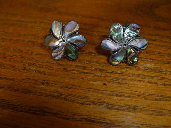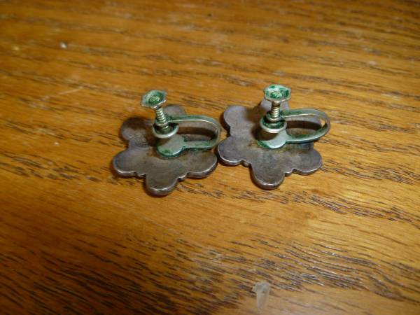 Not pierced earrings. Approximately 1" diameter. Flower design style. Have some slight tarnish on back.