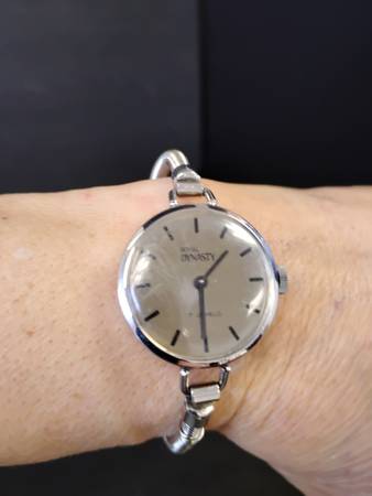 Vintage- 1960's Royal Dynasty Wind Up Women's Bracelet Watch. Classic Time Piece 17 Jewel, Stainless Steel Back, Bronze Dial Measures Approx. 5 3/4"