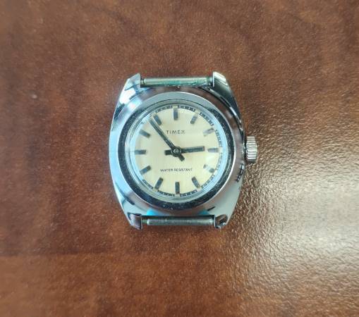 Vintage Timex Women's Watch. No Band. Waterproof, Brass Tone Face, Stainless Steel Back, Needs Battery