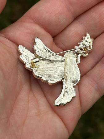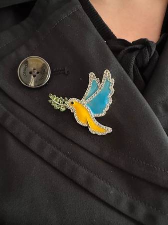 Up for sale New Ukrainian Blue and Yellow Peace Dove Rhinestone Brooch.