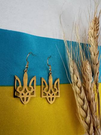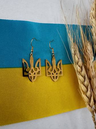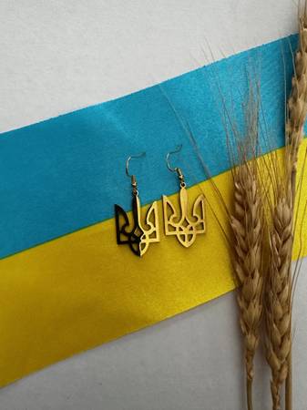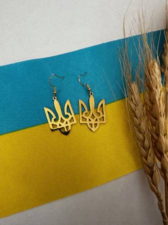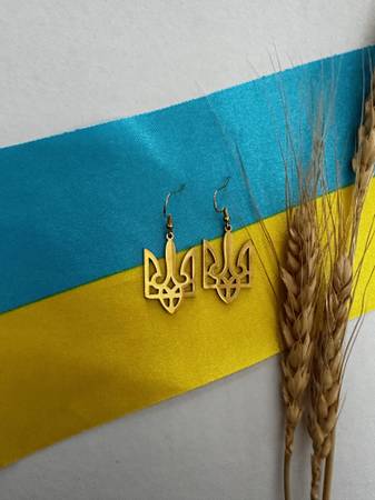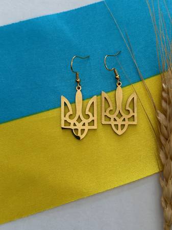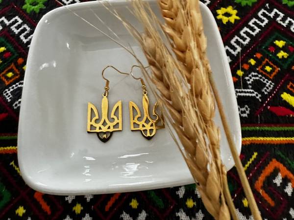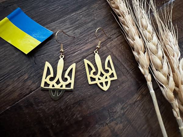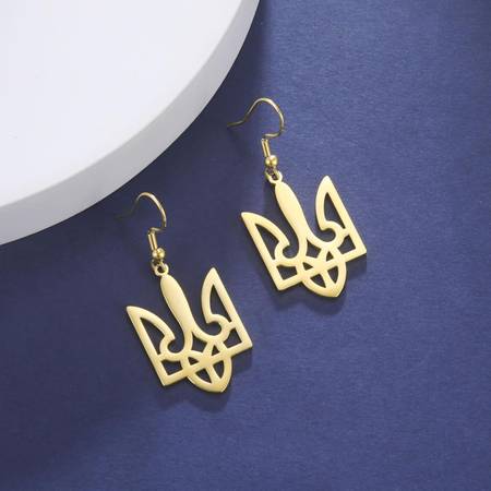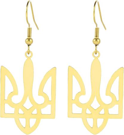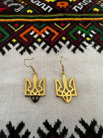 Up for sale New Ukrainian Tryzub Trident Drop Earrings Gold Color.
