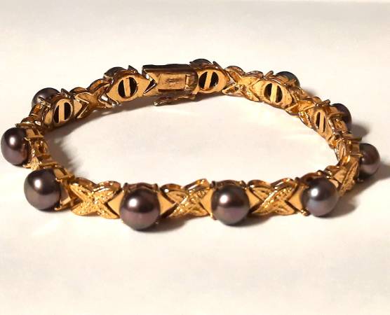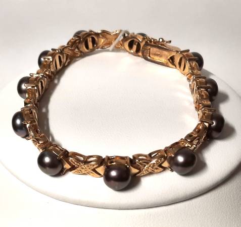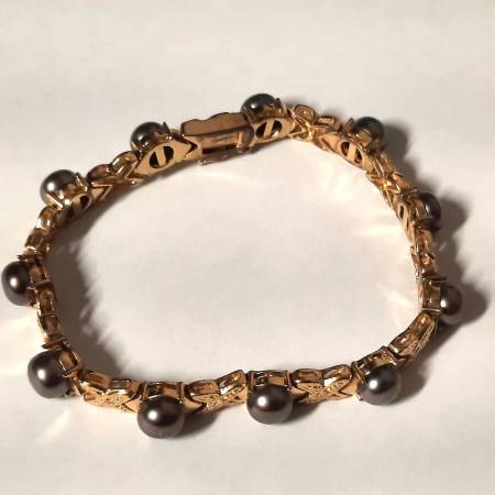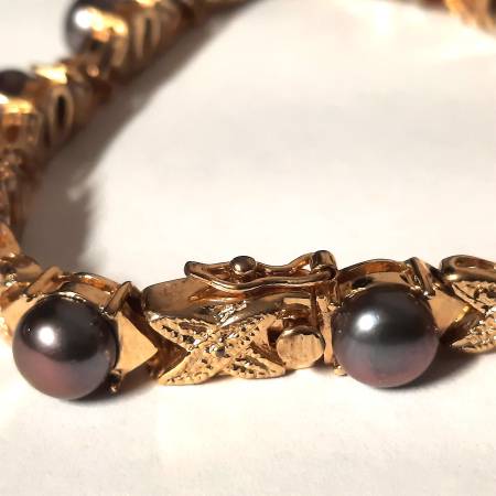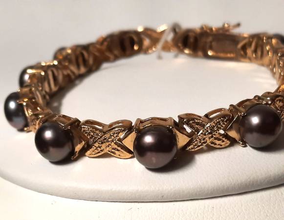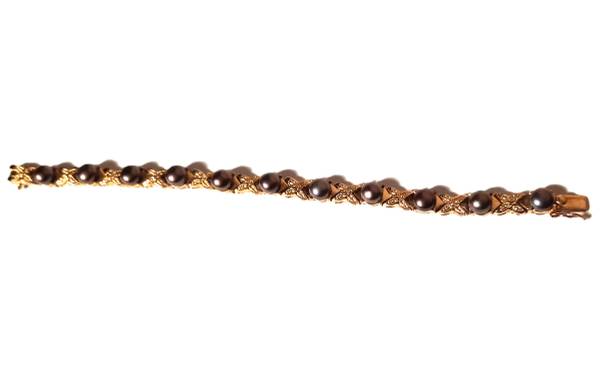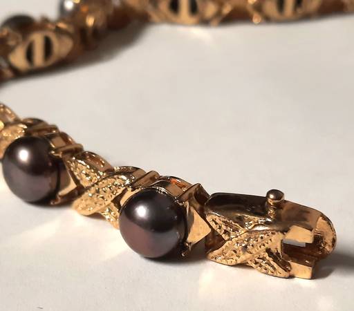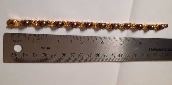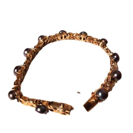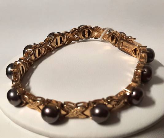 Jewelry women pink gold tone bracelet brown pearls Party cocktail