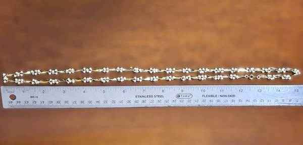 It was expensive and exclusive necklace/bracelet; bought many years ago.