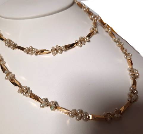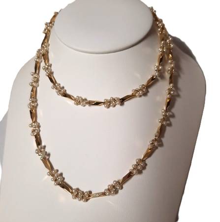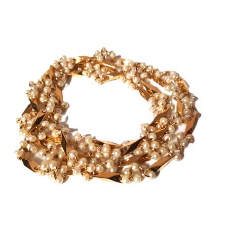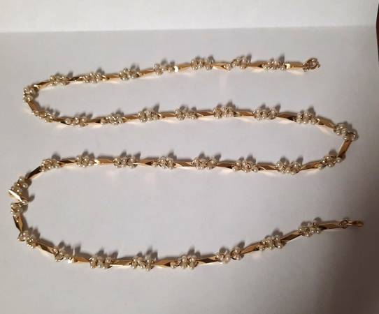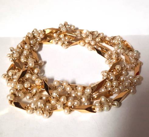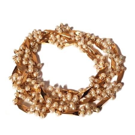 Jewelry women yellow gold tone NECKLACE or bracelet white pearls Party cocktail