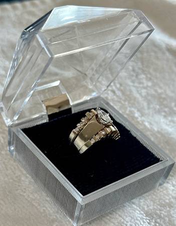 This Wedding Ring Set is truly beautiful and the Diamonds sparkle and glisten. Substantial thickness to the bands. They have been stored in its original box for years & is in excellent condition.