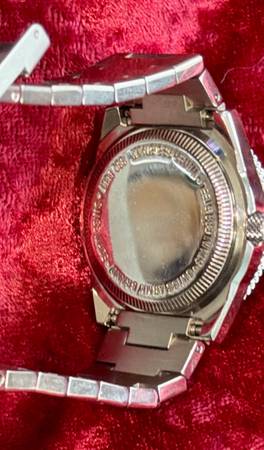 The bracelet is made of stainless steel in silver, with a double-locking fold-over clasp for security. It is a quartz movement watch with a 12-hour dial, knurling, date indicator, easy-to-read large numerals, and a seconds hand. Water-resistant up to 330 ft. Swiss Made-This watch comes with a brand new battery!