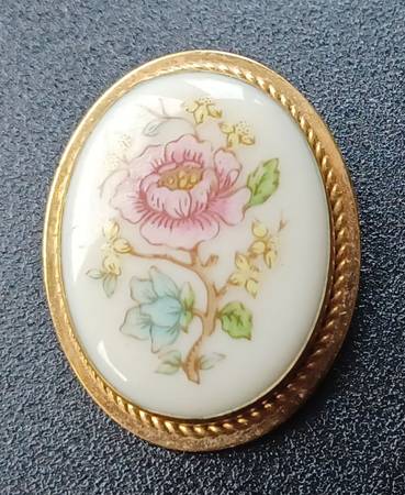 Vintage Lenox Porcelain 14K GF Hand-painted 1 1/4" Flower Brooch / Pendant. Sole owner. Near Wolf and Central roads Call Ken pick-up only or meet nearby