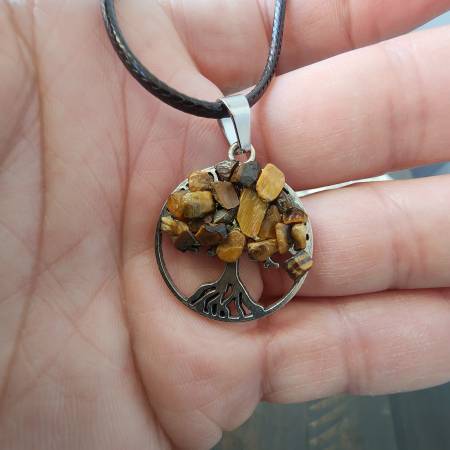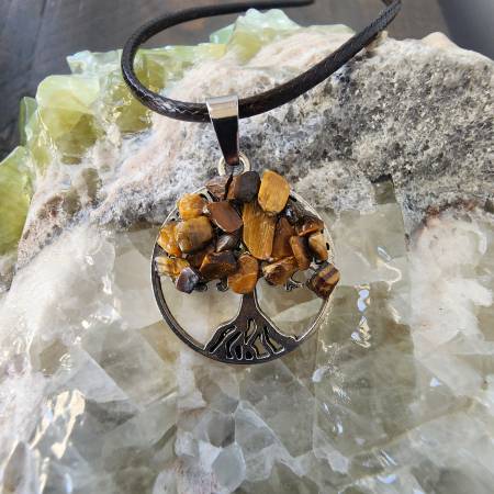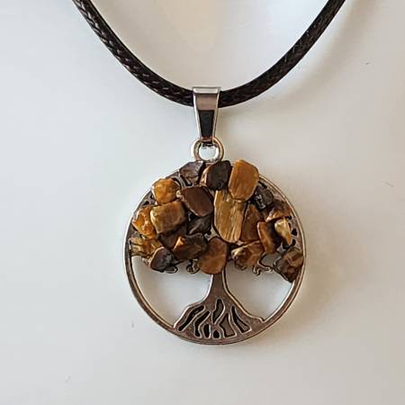 Astra – Tree of Life Tiger’s Eye Pendant, Adjustable Brown Rope Necklace