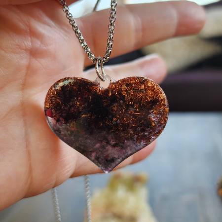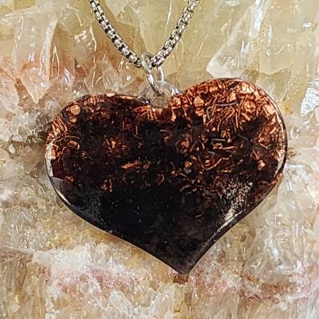 Carry a personal source of positive energy with this high-end, artisan-crafted Orgonite Heart Pendant. Meticulously made with premium Amethyst and Garnet stones and pure copper, this piece is a wearable generator of harmonious energy. Designed for those who appreciate superior workmanship and powerful, functional crystal jewelry.