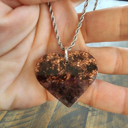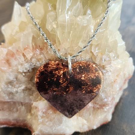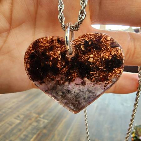 Orgonite Heart Pendant,Amethyst Garnet Copper Resin, High Vibration Jewelry, Luxury Healing Necklace, EMF Protection, Masterpiece Chakra Pendant