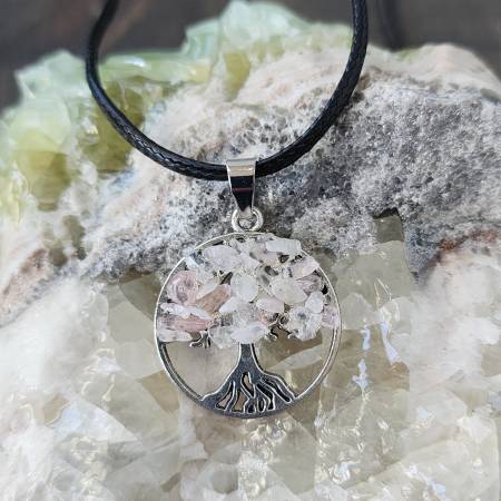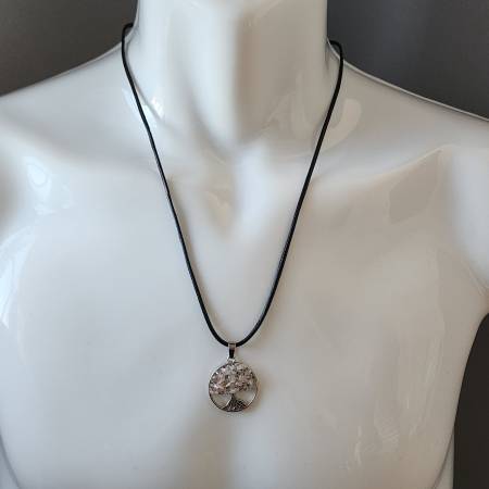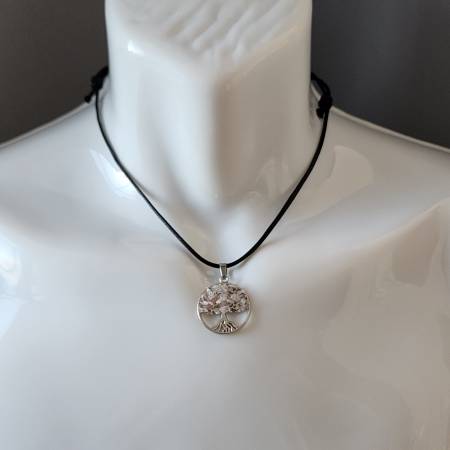 Serena – Tree of Life Rose Quartz Pendant, Adjustable Black Rope Necklace