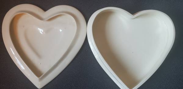 A darling Vintage Heart shaped ceramic white glaze box with textured lace doily design around the heart. Multiple uses - jewelry, odds and ends or decoration if you collect heart design items.