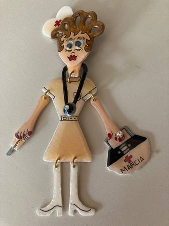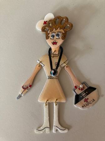 Rare Unique Brooch/Pin, Large (about 5.5”) Articulated Nurse, Like New Vintage Very cute, one of a kind!