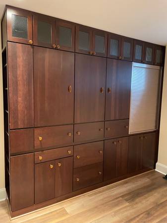 Nice custom built in cabinet unit. Solid cheery wood doors and frames. All boxes are individual and can be reconfigured to fit your needs. Already removed and ready to haul. Call or text First $2500...