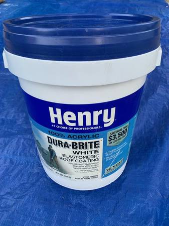 We are selling this unused full can 4.75 gallons of Henry Dura-Brite White Roof Coating which can be applied in extreme temperatures and is still within the 10 year warranty period. Our price is half of retail.
