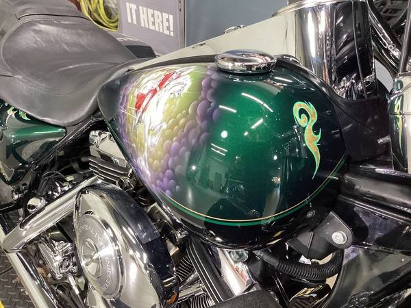 WOW FACTOR! ONLY 36,975 MILES, FULL CUSTOM PAINT, 21 CHROME FAT SPOKE FRONT WHEEL, CHROME FORKS, HOPPE UPPER FAIRING WITH BLUETOOTH AUDIO, CHROME LOWER FAIRINGS, SUPERTRAPP EXHAUST, HIGH FLOW INTAKE, CHROME LOWER FAIRINGS, AFTERMARKET NEW STYLE EXTENDED SADDLEBAGS, BAG FILLERS, UPGRADED BIG HANDLEBARS, RIDER AND PASSENGER CHROME FLOORBOARDS, EXTRA ENGINE CHROME, HIGHWAY PEGS, UPGRADED GRIPS, LED HEADLIGHT AND SPOT LIGHTS, UPGRADED BEZELS, CHROME AXLE CAPS, NEW REAR TIRE, AND MORE! NICE AND LOADED BUDGET CUSTOM BAGGER!