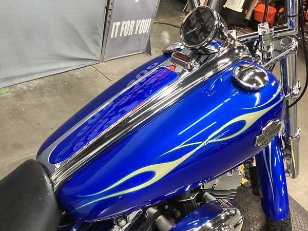 ONLY 8965 MILES, AFTERMARKET EXHAUST, HIGH FLOW INTAKE, UPGRADED BIG HANDLEBARS, CHROME HANDLEBAR CONTROLS AND MASTER CYLINDER, CHROME FORKS AND TRIPLE TREES, UPGRADED GRIPS, MIRRORS, HORN, AND CHROME LEVERS, DANNY GRAY SOLO SEAT, UPGRADED LICENSE PLATE MOUNT, SECURITY, 96 MOTOR, 6 SPEED TRANS, AND NEW FRONT TIRE! SUPER CLEAN AND LOADED LOW MILEAGE SOFTAIL CRUISER! HARD TO FIND!