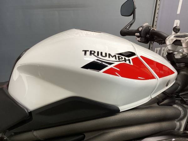 ONLY 10,513 MILES, ARROW EXHAUST, CARBON FIBER HEAT SHIELDS, CARBON FIBER FRONT FENDER AND SIDE FAIRINGS, OHLINS FRONT AND REAR SUSPENSION, TRIUMPH FRAME SLIDERS, TRIUMPH FRONT AXLE SLIDERS, RIZOMA LED FRONT SIGNALS, EVOTECH REAR TAIL TIDY, LED INTEGRATED TAIL LIGHT, ABS, TRACTION CONTROL, RIDE MODES CONTROL, CRUISE CONTROL, QUICK SHIFTER, ON-BOARD COMPUTER, REAR SEAT COWL, AND MORE! SUPER CLEAN AND LOADED BIG POWER NAKED SPORT BIKE! SWEET TRIPLE SOUND!