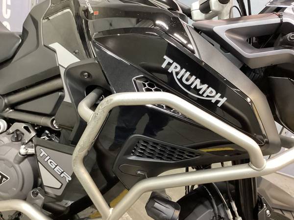 ONLY 23,834 MILES, 1-OWNER, FULL CRASH CAGE, TRIUMPH SIDE BAG MOUNTS AND TOP BOX MOUNTS, PUIG WINDSCREEN, HANDGUARDS, FOG LIGHTS, KEYLESS START, ABS, TRACTION CONTROL, CRUISE CONTROL, RIDE MODES CONTROL, ELECTRONIC SUSPENSION DAMPING CONTROL, SHIFT ASSIST, HILL HOLD CONTROL, BLIND SPOT RADAR, HEATED GRIPS, HEATED SEATS, ADJUSTABLE WINDSHIELD, ON-BOARD COMPUTER, CENTER STAND, NEW REAR TIRE, AND MORE! CLEAN FACTORY LOADED ADVENTURE TOURING RIDE! THERE ARE SOME SCUFFS ON THE CRASHBARS.