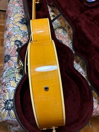 This is a dead mint Gretsch G 6040 MCSS Synchromatic Archtop Jazz Guitar (Identical to the JV400 "Jimmy Vaughn" Model - $4,000.) If you want to save $1500 and don't care about having Jimmy Vaughn's name on the guitar the is identical. Top is Spruce, Back, Sides, and Neck are Tiger Maple. Single Pickup, Volume and Tone Controls are on Pick Guard. 17" Wide Bout. Hand Crafted in Japan. Hard Shell, Domed Case with plush interior. Sound Holes are the famous "Cat's Eye" shape. Corners of Holes are perfect. No separation. Neck is perfect and straight, and plays like a high end Archtop Jazz Guitar should. Played in Non-Smoking Home. Never Gigged.