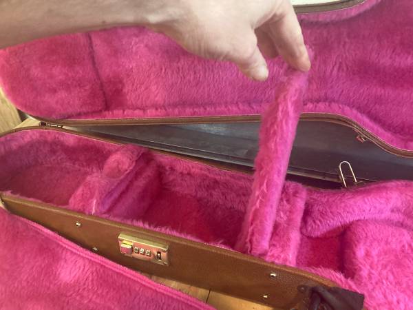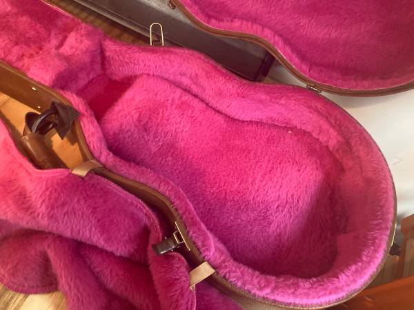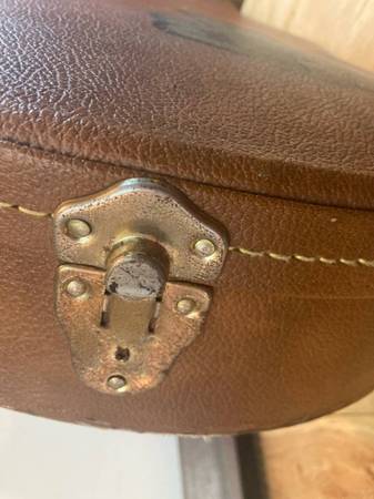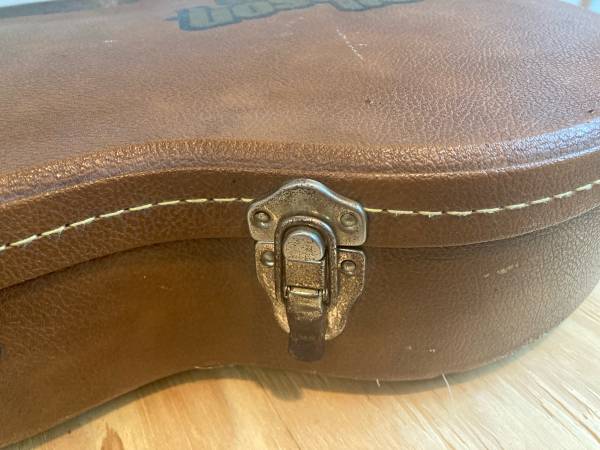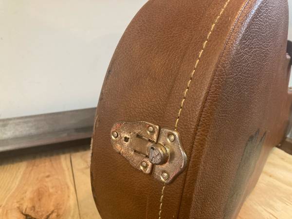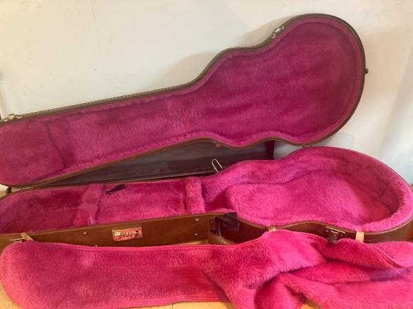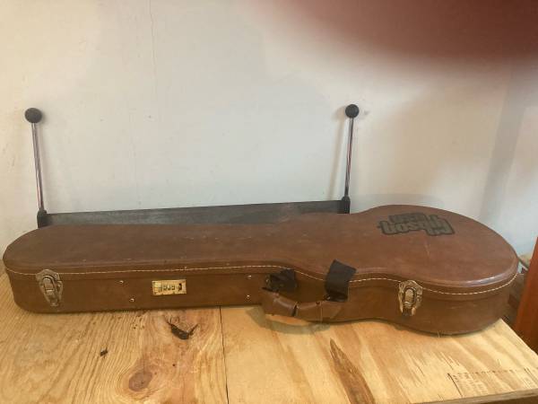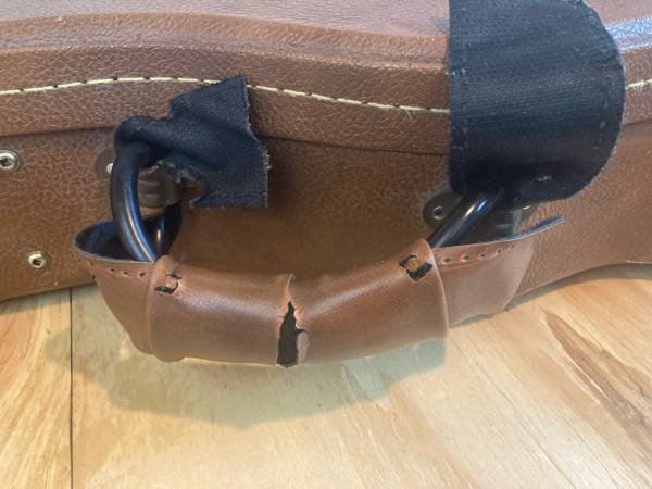Gibson Guitar Case ,inside tag says “made in Canada” excellent condition ,the handle lost some of its leather or Vinyl wrap ,but is still 100% sturdy and strong ,hinges are all good ,one closing hasp or latch is broken ,and the case lock is broken ,but I do have the lock hasp ,just needs to be re-riveted ,$80.00 obo