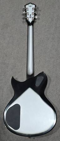 The neck pickup is a low-wind custom shop model with split coil option and a Bare Knuckle (UK hand-wound) custom shop bridge, both with nickel covers. It also has exclusive Grover 18:1 tuners and Buzz Feiten tuning system, along with the GC37 hard shell deluxe case. Black and white were the standard colors for this model, and the Silverburst was a USA Custom Shop exclusive for the catalog photos.