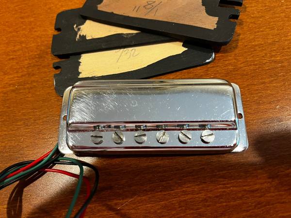 A very cool and rare made in Japan 1960s era guitar single coil pickup. It has nice long lead wires. Measured 4.2K Ohms on my meter. This style pickup is surface mounted. Multiple recently made shims of various thicknesses are included. If you need a set, see my listings for the partner pickup to this one.