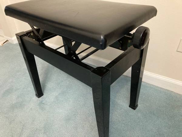 Piano Bench 21"L x 12"W x 17-1/4"H Adjustable Height up to 20-1/4H Polished Black, Padded Seat, Sturdy Construction. Excellent Condition. available as long as the post is up.