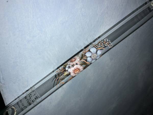 This particular flute has a delicate floral design and comes in its original foam-lined wooden case.