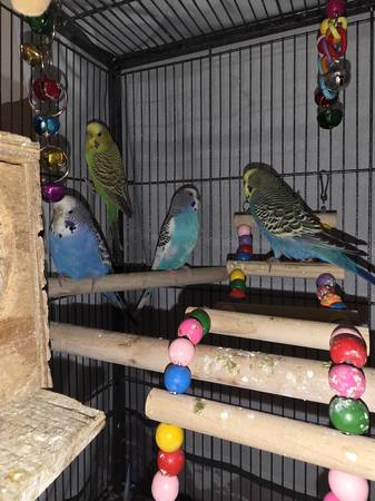 2 male 2 female Parakeets available for adoption..very healthy and friendly love to spend time outside the cage.. call or text for more info 773 876 4 four six2 note : no cage