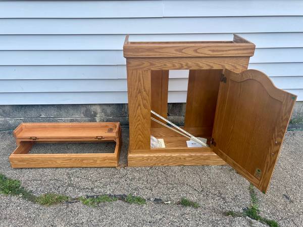 Brand new inbox 30 inch oak stand and canopy. Old model but built very well. Fits 20L gal,29 gal and 37 gal aquariums. $120
