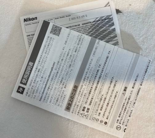 Nikon 800 f6.3 PF Condition new