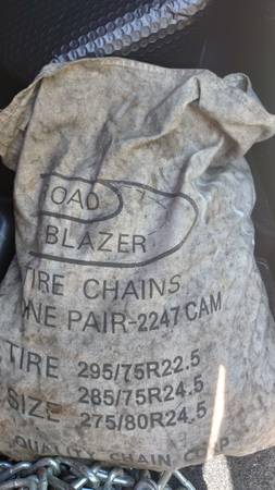 I have 2 bags - 1 pair and 2 bags 1/2 pair truck tire chains, fit tire size 295/75R22.5, 285/75R24.5 and 275/80R24.5 , can pick up in Arlington Heights, asking $200 for all four of them, chains are...