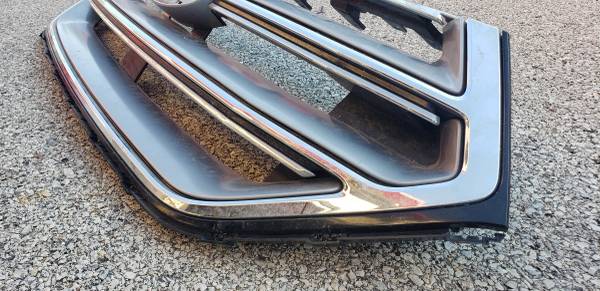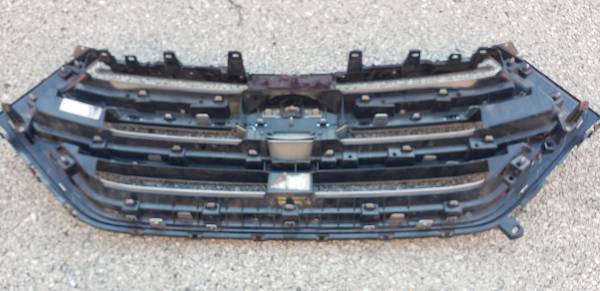 A used front grille assembly for Ford Edge. It fits years 2015-2018. All tabs are intact. No scuffs, scratches or holes. A left side has a plastic trim missing on the bottom which will not be visible once grille is mounted (about an inch long - see pictures). Otherwise, it is as good as new. This is OEM part, not an aftermarket.