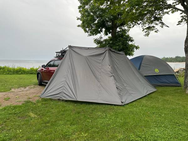 For sale is an Overland Vehicle Systems (OVS) 270 degree awning, which includes an extra black case, 4 walls, an LED light strip, added LED strips on each support arm, upgraded reinforced walls with snaps/velcro and an added screen door (which was added by a shop locally). This kit is significantly upgraded from what you would purchase off the shelf.