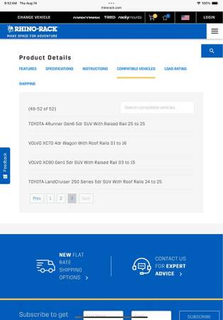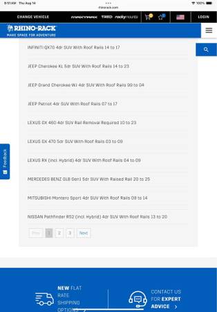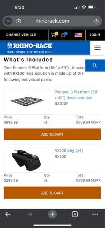 For sale is the Rhino Rack platform system. This was mounted on a Nissan Pathfinder. May be suitable for other vehicles, but check with Rhino Rack for specific fit. This does not come with any accessories, but if you need light bracket, I have some available for an additional cost.