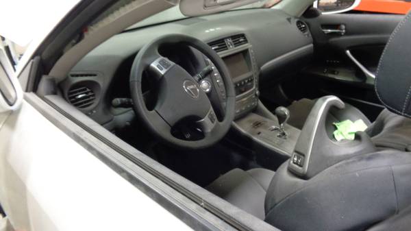 PARTING OUT FRONT END AND INSIDE PART - AIR BAGS, SEATS, ROOF, ENGINE AND TRANSMISSION OF THE 2012 LEXUS IS 250 CONVERTIBLE. ROCKER PANEL MOLDINGS ARE ALSO AVAILABLE
