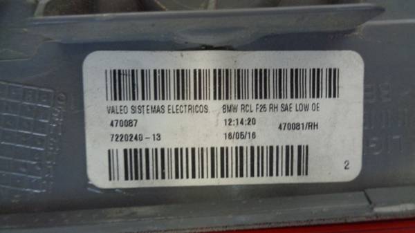 USED RT TAIL LIGHT - IN SIDE PANEL MOUNTED (OUTER) OE#63217220240 FOR VEHICLE WITH NO FRONT XENON, NO ADAPTIVE, NO LED LIGHTS. TABS OK BUT SMALL PIN IS BROKEN AND BOTTOM LENS PLASTIC IS CRUSHED OUTSIDE BUT STIL LAMP IS GOOD.